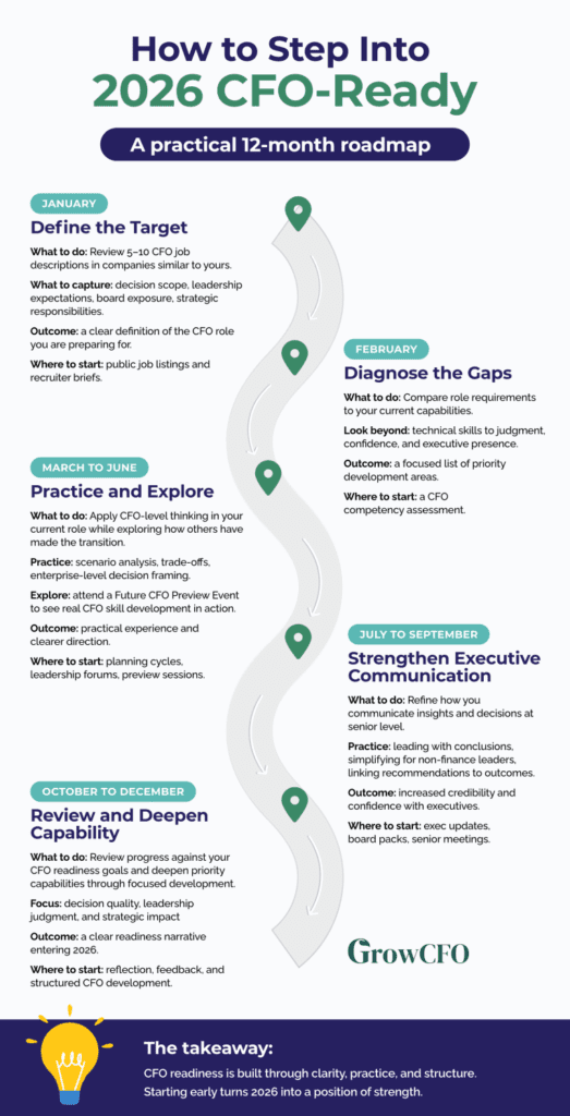 Becoming CFO-ready is less about changing who you are and more about developing how you think, decide, and communicate. Here is a practical way to approach the year ahead.